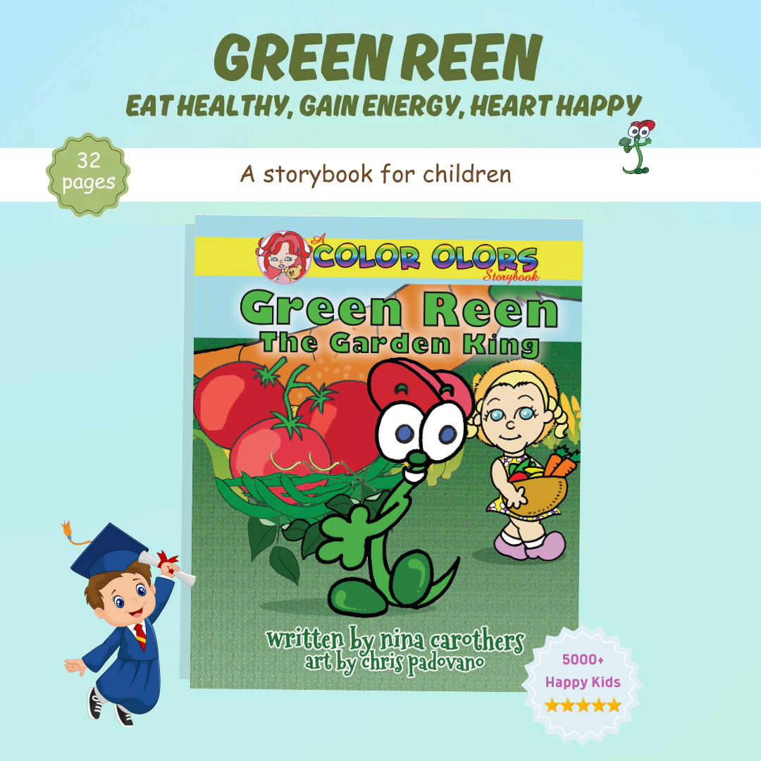 Your children will learn about the wonderful attributes of vegetables and the joy of gardening. Green Reen makes healthy eating fun! In this book, kids will learn about making good food choices, inspiring them to eat fresh, delicious foods that help them grow strong and have energy.